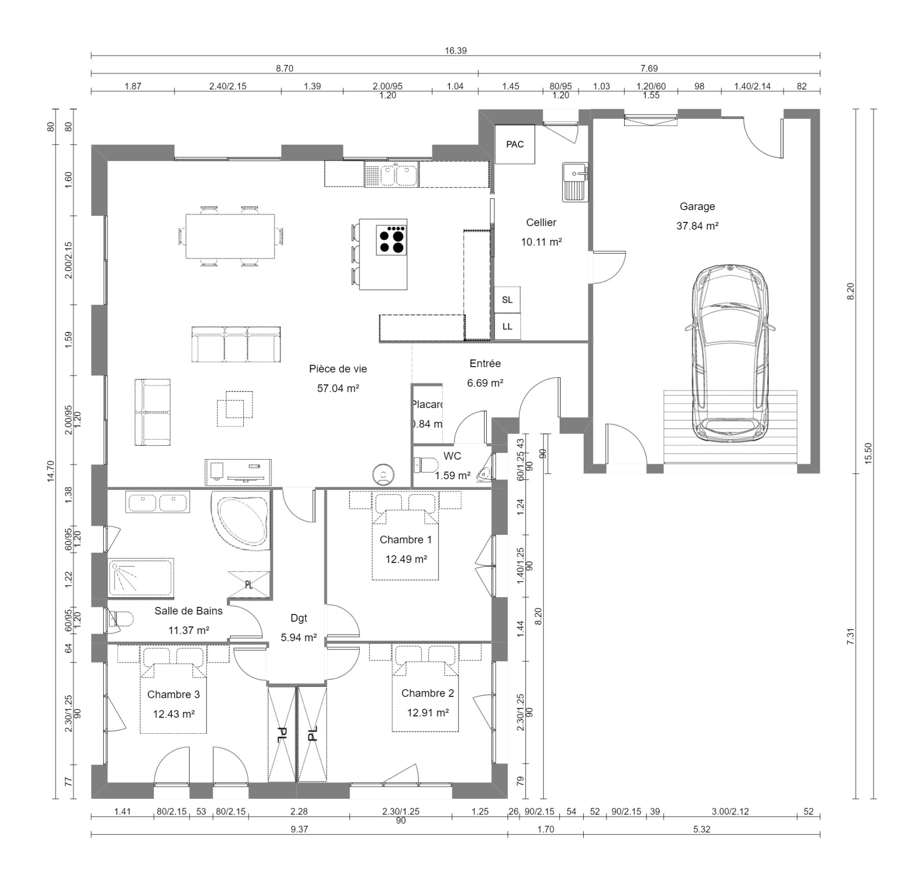 La maison possède 3 belles chambres, une grande salle de bain, une pièce de vie agréable et lumineuse.